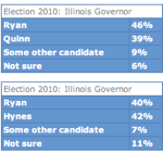 I am shocked that Ryan leads Quinn in this poll. Something just does not seem right here. Jim Ryan disappeared for 8 years, his name recognition cannot be that of Quinn, this is still a “blue” state. Something just smells fishy here and I am not smart enough to figure out what it is.