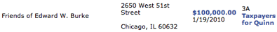 * Thanks to a commenter, I checked the latest campaign finance report from Gov. Quinn and saw this…
