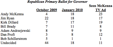 Between 12/09-1/10, among poll respondents who are likely to pull a “Republican Primary Ballot for Governor” and have “Seen McKenna’s TV Ad”: