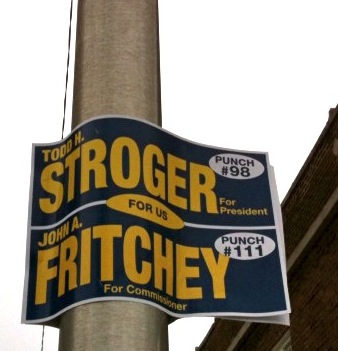 * These Stroger/Fritchey signs began mysteriously appearing on light posts and street signs on the Northwest Side this weekend…