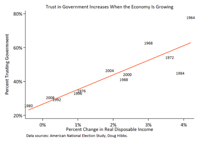 Does anyone else find it odd that trust in government increased between 2000 and 2004? I mean, we had that guy, with the grin, in the office with round walls.