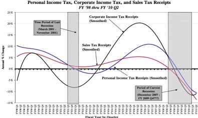 Personal Income Tax, Corporate Income Tax, and Sales Tax Receipts - FY ‘98 thru FY ‘10 Q2…