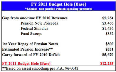 7)So, FY11 revenues will be at least $6.1 bn short of FY11 expenditures if there are no spending cuts or tax increases. That’s the gap we need to fill just to keep the backlog of bills from getting worse.