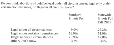 I always find the respondents to abortion polls to be a little misguided. So 28.9% of people in Southern Illinois would tell a woman she can’t have an abortion, EVEN if delivering the baby will kill her?