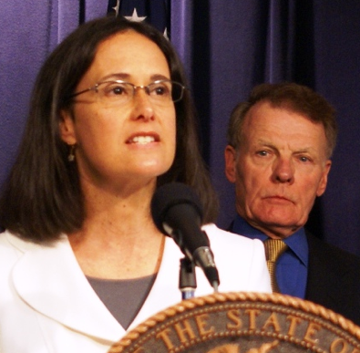 In the midst of her announcement supporting Senate hopeful Alexi Giannoulias, Attorney General Lisa Madigan suddently breaks out into singing “Daddy Please Don’t…”