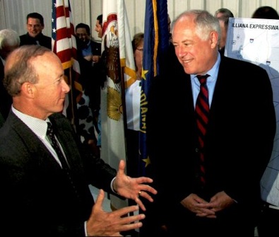 * The photo is of Gov. Pat Quinn on the right and Indiana Gov. Mitch Daniels - the man who loves to hate on Illinois - on the left. The photo was taken yesterday during the Illiana Expressway press conference…