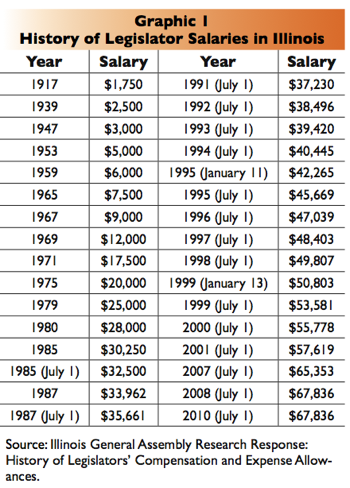 “Occupations in Illinois receiving comparable compensation to legislators include microbiologists, physics professors, credit analysts and tax examiners.”