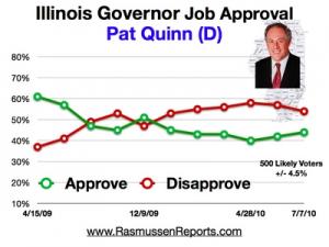 Thirty-seven percent (37%) of Illinois voters approve of the job [Quinn] is doing as governor, down seven points from earlier this month, while 61% disapprove.