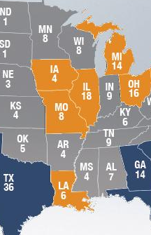 Swing losers are MO IA MI PA OH
