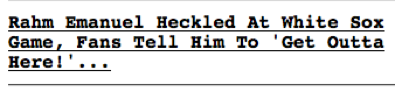 Oh, for Pete’s sake. Emanuel is a Cub fan. All Cub fans are heckled at Sox Park. Heck, even Sox fan politicians are heckled at Sox Park. The same goes for Cub Field. It’s a Chicago tradition, and it isn’t just confined to sporting events. Years ago, I took my brother to the Blues Festival and Harold Washington was loudly booed for what seemed like a few minutes. My brother, who lives in California, couldn’t believe it. I just laughed, as did everyone else around me.