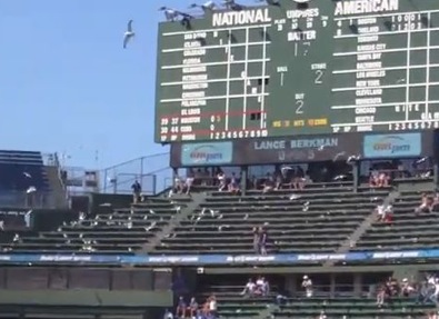 Now as to the “Gulls.” 47th Ward’s comment at 2:08 was right on–mostly, they just want EATS, and they and their ancestors have just been so conditioned to swooping in in mid/late afternoon AFter those earlier, good ol’days, more traditional 1:20 p.m game starts to clean up (and I remember seeing the same regularly going back to at least 1969)so that they’re probably baffled at times but still STARVING. It’s about survival for them. If you’ve ever been on some of the North Side/Lake Michigan beaches, you’ll witness the same thing. Their vision is spectacular and when they get a good look at the leftovers from the air–esPECially if their are open gaps without fans too nearby–they’ll go for it! Back in the day I used to actually be enamored by them somewhat but appartently they’re gettin’ a bit out of control these days–but I can’t disagree with the Commenters about one other major cause being the open parts without FANS in the seats–that’ll bring the birds on in droves….One bit of advice to Ricketts–how about actually LOWering some ticket prices for some games on weekdays–especially in the cheap seats but do include the Bleachers which are hardly even “cheap” anymore (like “10 Bucks Off Tuesdays,” “Girls Go Free Mondays” or some other gimmick like that, or “50 Cent HotDog Days”)…. That way he can help solve TWO nuisances to the new owners! But whatever the case, Go SOX/Go CUBS!!!