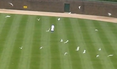 Give the seagulls a break. They heard that a “marlon bird” was getting paid handsomely to hang out in center field at Wrigley Field and they just want a piece of the action.