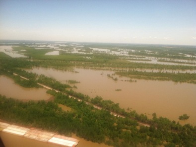 I drove east from Poplar Bluff on US 60 (down to two-lanes is several stretches due to flooding)this evening and there are hundreds of homes flooded in view of the highway. National Guard had helicopters flying into a command post in Sikeston. I wanted to try and see Cairo, but it was getting dark and lots of water around. It’s bad there, folks. When you hit your knees, say a prayer for them no matter which side of the rivers they live…