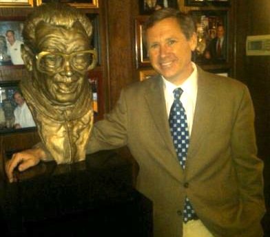 Mark Kirk standing next to a bust of Harry Carey made possible by a loan from the Giannoulias family bank… Minutes later, the U.S. Government seized the bust.