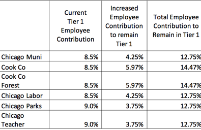 The plan, endorsed by the top Democrat and the top Republican in the Illinois House, would require many state employees to pay about 13.8 percent of their salaries into the pension system to keep their current benefits. Or they could keep more of their money but receive lower benefits at retirement. A third option would be a new 401(k)-style investment plan.