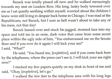 I was in the House press box when Parke shoved Black, and I was in the Senate box when the altercation began between Obama and Hendon. From Hendon’s book…