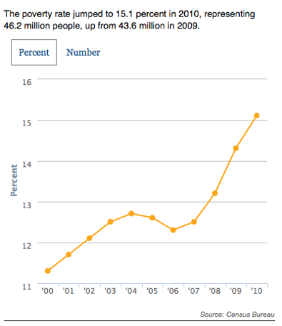 The poverty rate last year rose to 14.1 percent from 13.2 percent in 2009, data showed. […]