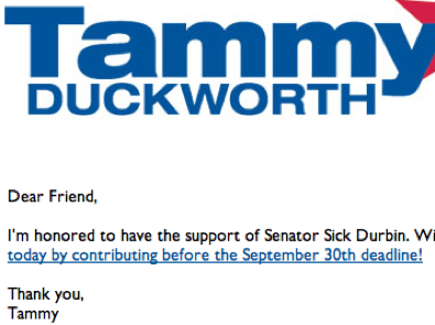 …Adding… But this Duckworth campaign e-mail update ain’t bad at all…