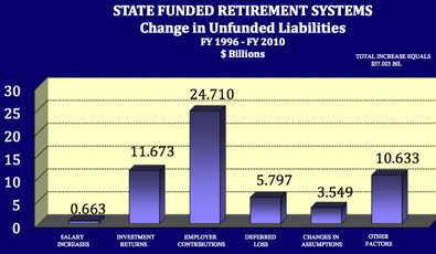 === As shown in chart below, the single largest driver of the increase in the unfunded liability has been insufficient employer contributions. ===