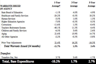 the most obvious things I see are that spending grew 3 1/2 times as fast as revenue, and Healthcare and Family Services and Aging stand out as champions of unsustainable growth rates