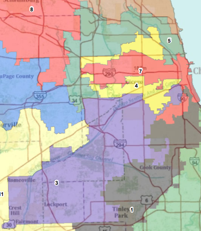 Illinois Democrats dominated the map-making because they control the General Assembly and the governor’s office. The new map drew Republicans out of their districts and lumped incumbent GOP members together or threw them into Democrat-friendly territory.