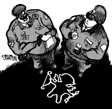“Hey Lou, check his pockets. The Superintendent is trying to come up with enough cash to go to that celebrity roast downtown.”