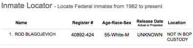 * You can track Blagojevich’s stay in prison with the BOP’s inmate locater website…