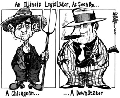 I don’t actually think that Downstaters really hate Chicago, or vice versa. It’s just an ingrained part of our state’s politics. The regions have fought each other for control for more than 150 years, and those battles have been handed down from generation to generation, always reignited by politicians hoping to win elections.