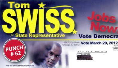 * Former Republican Party official Tom Swiss is running against the arrested Rep. Derrick Smith (D-Chicago) in the Democratic primary. Swiss is complaining about a yard sign that I showed subscribers on Monday…