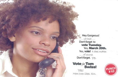 I agree the first one is downright offensive and the second is clearly intentionally deceptive as to the race of the candidate. The third is fair game, though I agree that it’s doubtful Mr. Swiss would have voted any other way.