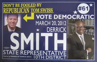 I think that’s what Tom Swiss might call trying to take advantage of an “extremely low information” voter base. The Rep. Smith yard sign could be seen as countering such an attempt.