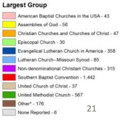 Those further interested in the study may wish to visit the web page for it, USReligionCensus.org. This web page has hundreds of U.S. maps available for download.