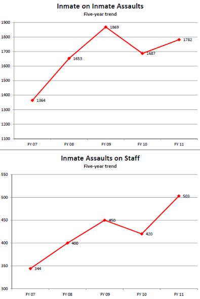 In any case, the five-year trend of rising violence against employees and among inmates is clear.
