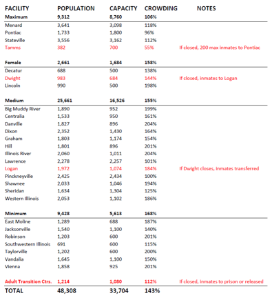 2. By their own data, Pontiac is not overcrowded and it does have room for the very few prisoners (175) coming from Tamms. That’s pretty interesting.