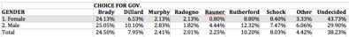 Lots more undecided women than men. Dillard, kabillionaire Bruce Rauner, Rutherford and “Other” all do significantly better with men than women. But, again, it’s way early. We’re only running this poll because the Daily Herald decided to poll convention delegates and thereby created a minor stir down in Tampa.