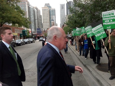 A day after new data revealed the Illinois unemployment rate rose to 9.1% in August, public employees and retirees opposed to Governor Pat Quinn’s threat to lay off nearly 4,000 child protection workers, disability caregivers, correctional officers and other public servants will demonstrate outside two public events where the governor is scheduled to appear.