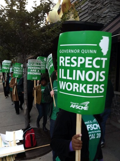 The unions continue to overplay their hands. I don’t think they realize how greedy they’re coming off to the public right now. Quinn is not scott walker or even john kasich by any stretch and they need to realize that if they continue to play this way they may eek out a win in the next battle but they’ll get killed in the war. $33k to be retired from a government job stacking books is a lot better than some people are doing employed right now.
