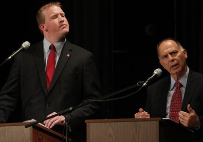 * A photo from Wednesday night’s 12th Congressional District debate featuring Jason Plummer and Bill Enyart…