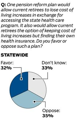 Actually, the pension question wording is slanted. It shouldn’t be “Public Workers or State Politicians” but instead “Public Sector Unions or State Politicians.” Decade after decade, the public sector unions relentlessly lobbied the legislature for increased benefits, even to the detriment of increased state funding for pensions. “Give us the increased benefits and don’t worry about the funding,” legislators were told, “The State Constitution guarantees the funding.” Both public sector unions and state politicians were willing to kick the can down the road for somebody else to pick-up the mess.