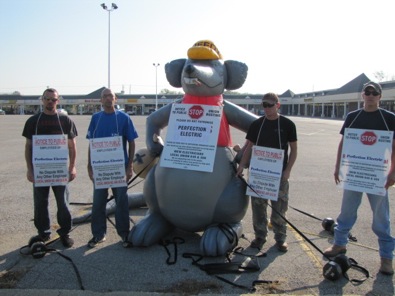 Jason Plummer, the Republican candidate for Congress in the 12th District of Southern Illinois, is well known in the labor community for his anti-union attitudes. Plummer purchased Monticello Plaza here last year through his development company, Midwest Asset Group. When Electricians Local 649 in Alton found out that Plummer had hired Perfection Electric, a nonunion contractor paying less than area standard wages to do the electrical work on a building in the plaza, they put a rat outside the building along with four union electricians to greet plaza customers and drivers along Highway 67. The highway runs between the plaza and Lewis and Clark Community College and a lot of drivers were honking their approval of the rat after it went up on a sunny morning last week.