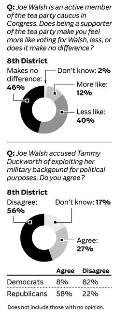 Independents are a key swing bloc of voters who often decide elections, and the poll found they make up more than a third of people casting ballots in the new district, which takes in northwest suburban Cook and eastern DuPage counties. Duckworth, a disabled Iraq War veteran making her second try for Congress, holds a 48 percent to 37 percent advantage over Walsh among independent voters. […]