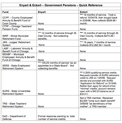 ==Much of Illinois’ dire financial situation is due to pension abuse, and Enyart’s insider dealings show how Illinois’pension system has been corrupted. Two of the pensions that he collects come from positions that lasted a total