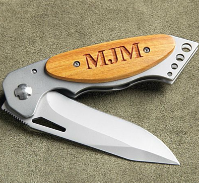 * From WalMart, a “Personalized Pocket Knife with Wood Handle”…