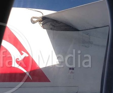 QF191 was about 20 minutes into its 6.15am flight from Cairns to Port Moresby on Thursday when a woman pointed outside the plane and told cabin crew: ‘’There’s a snake on the wing … There’s its head and if you look closely you can see a fraction of its body.'’