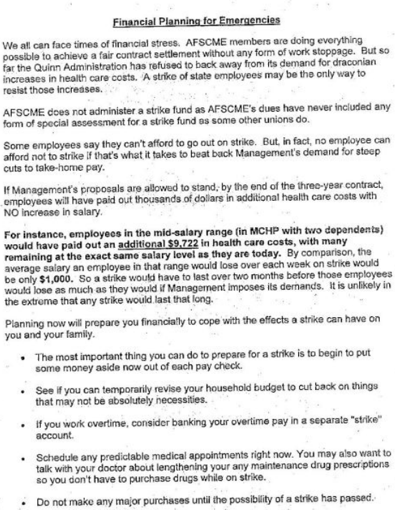 “The most important thing you can do to prepare for a strike is to begin to put some money aside now out of each pay check,” the letter notes. “Do not make any major purchases until the possibility of a strike has passed.” […]