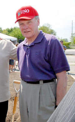 “Gramps” (nickname) Madigan proud to represent the “Senior’s Division” in the Midwest UNO Card-Game Tournament, this year strangely held outside empty, weed-infested lot in Bedford Park.