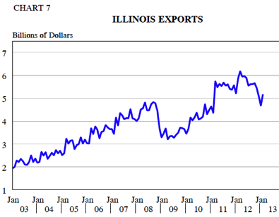 * Illinois exports have slowed, at least partly due to the growing European recession…