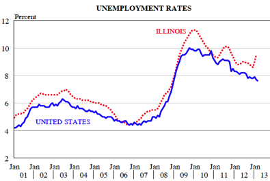 —The higher Illinois unemployment rate relative to the U.S. could actually be a positive indicator for the state—