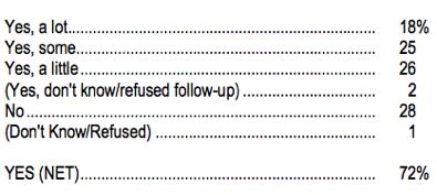 So, support is up nine points since October, but down five since a year ago February, but about the same as December 2010.