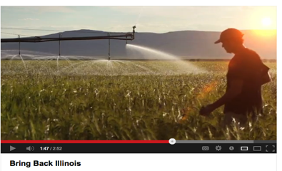 Just where are those mountains and/or huge hills in Illinois appearing in Rauner’s campaign video — which seems largely comprised of stock B-roll — and includes a farmer irrigating his field in front of a mountainous silhouette?